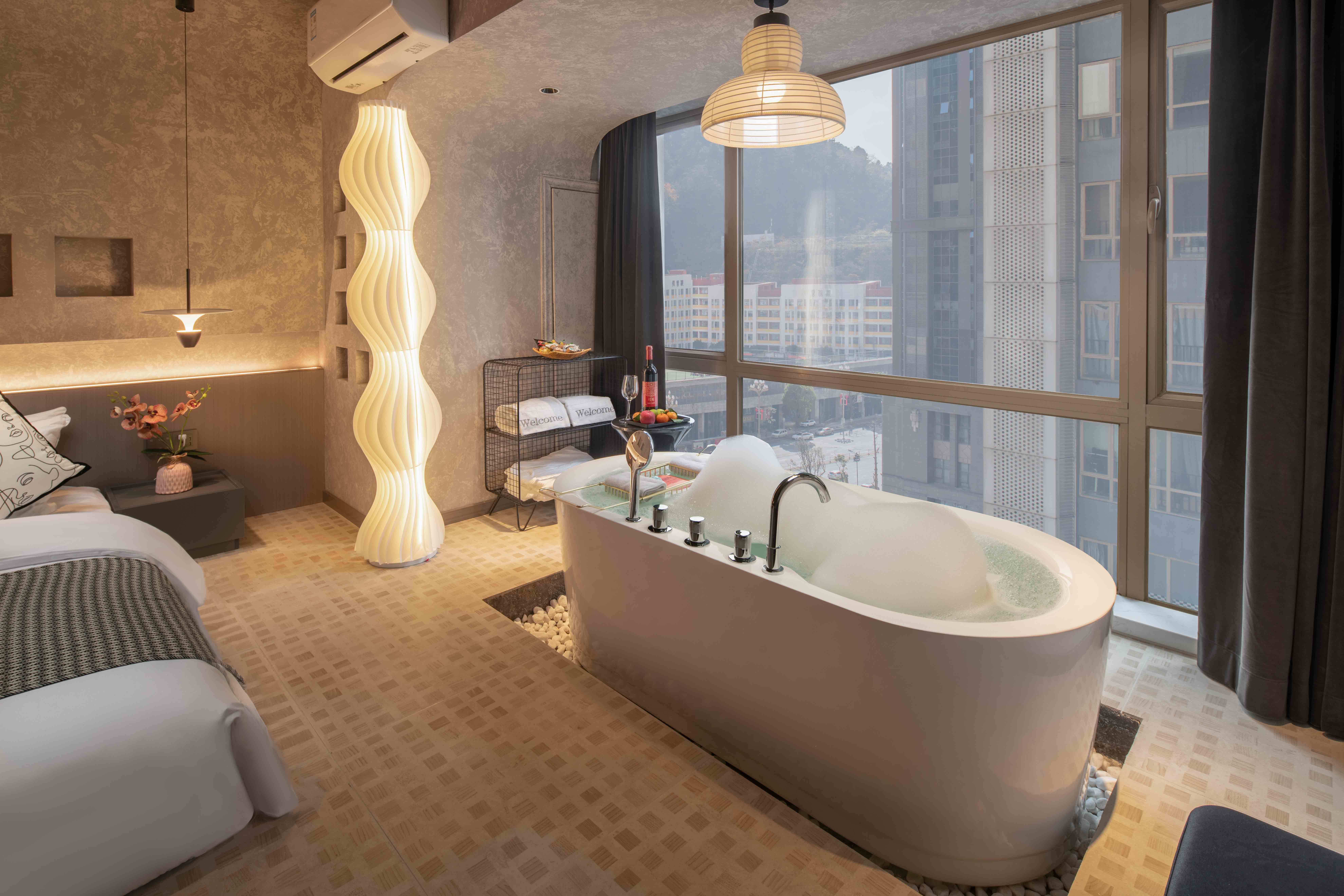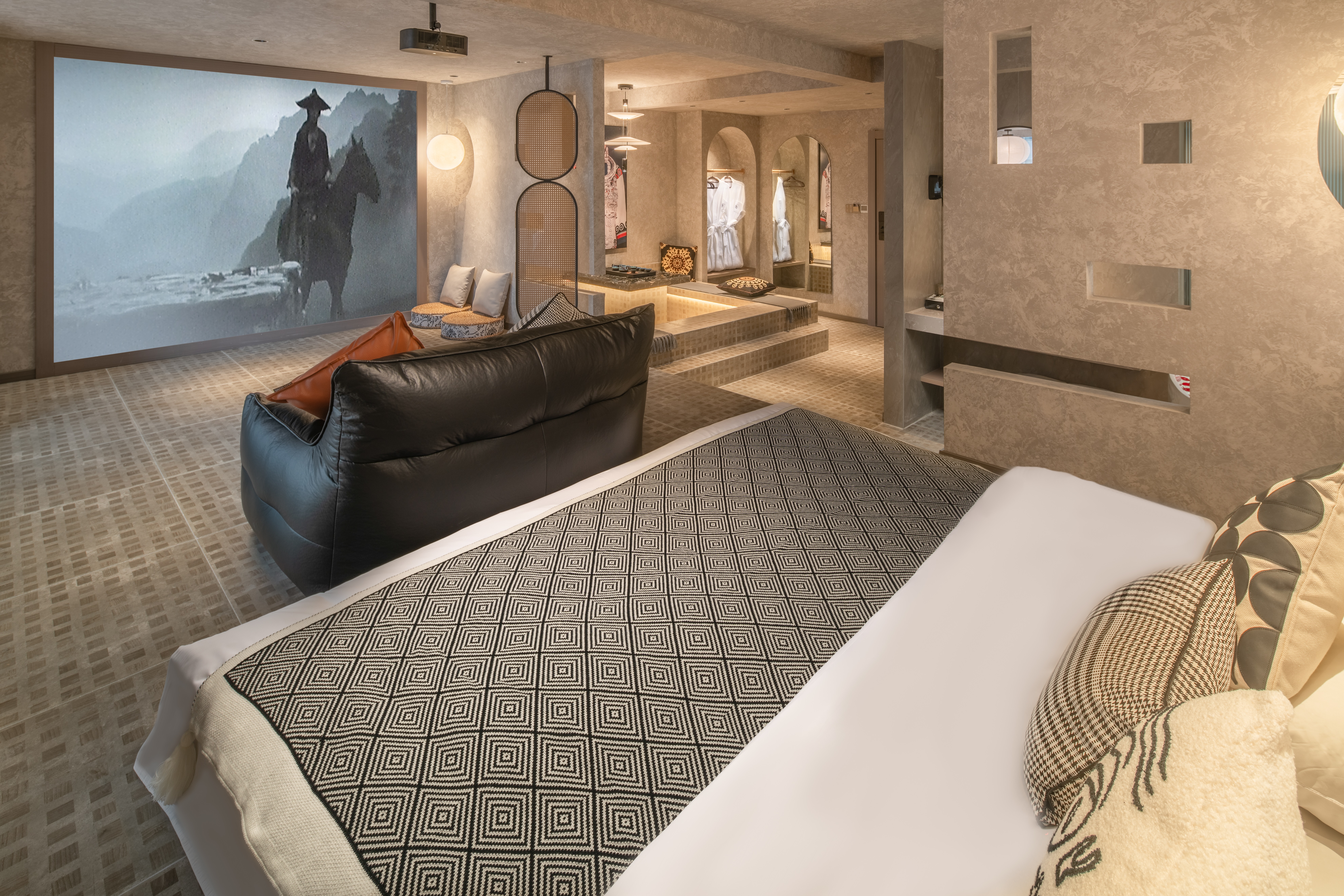 Man Su Luxury Smart Cinema Tub Large Suite (Independent Reception Tea Table + Extra Large Screen + High-Definition Projection + Tencent Membership)