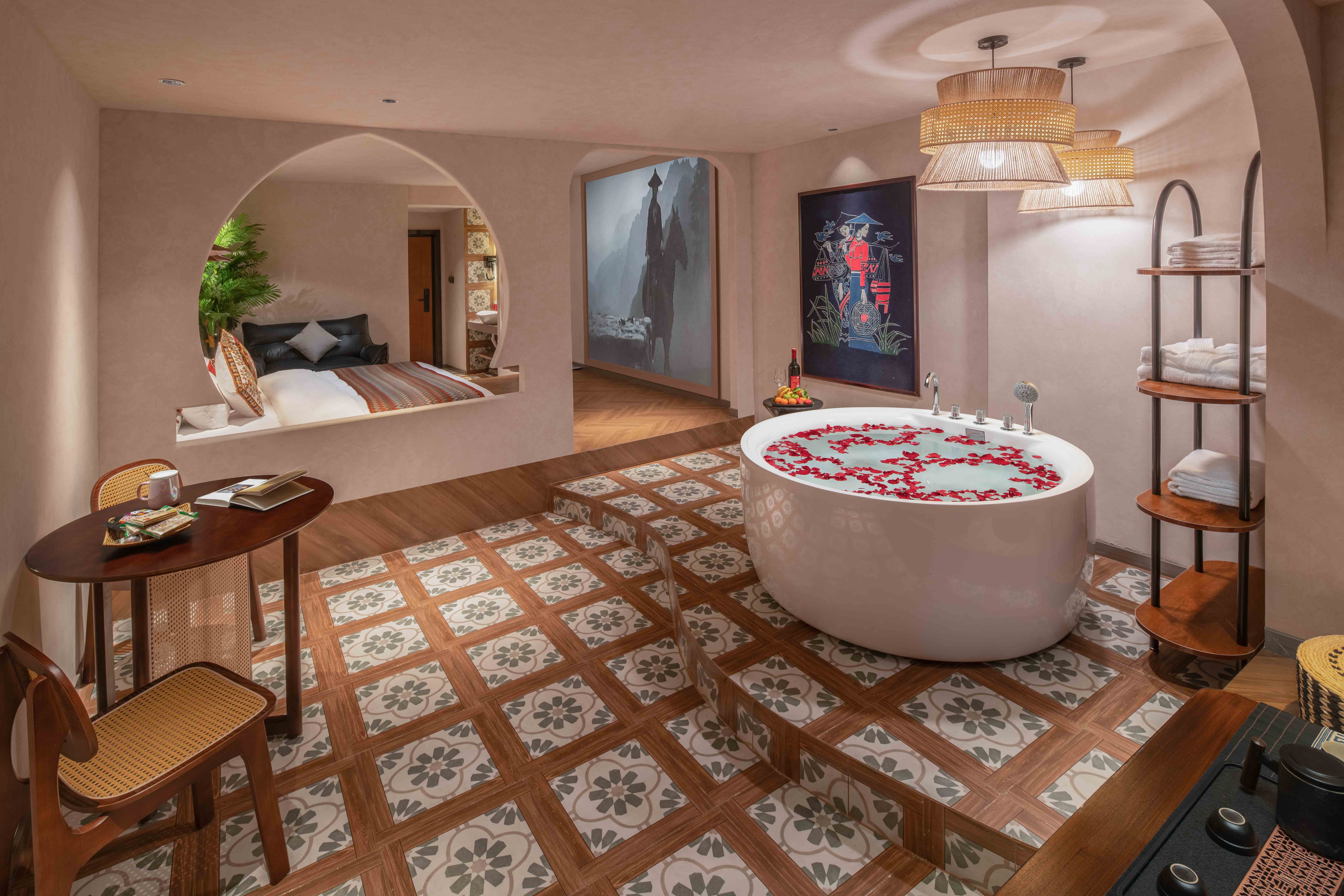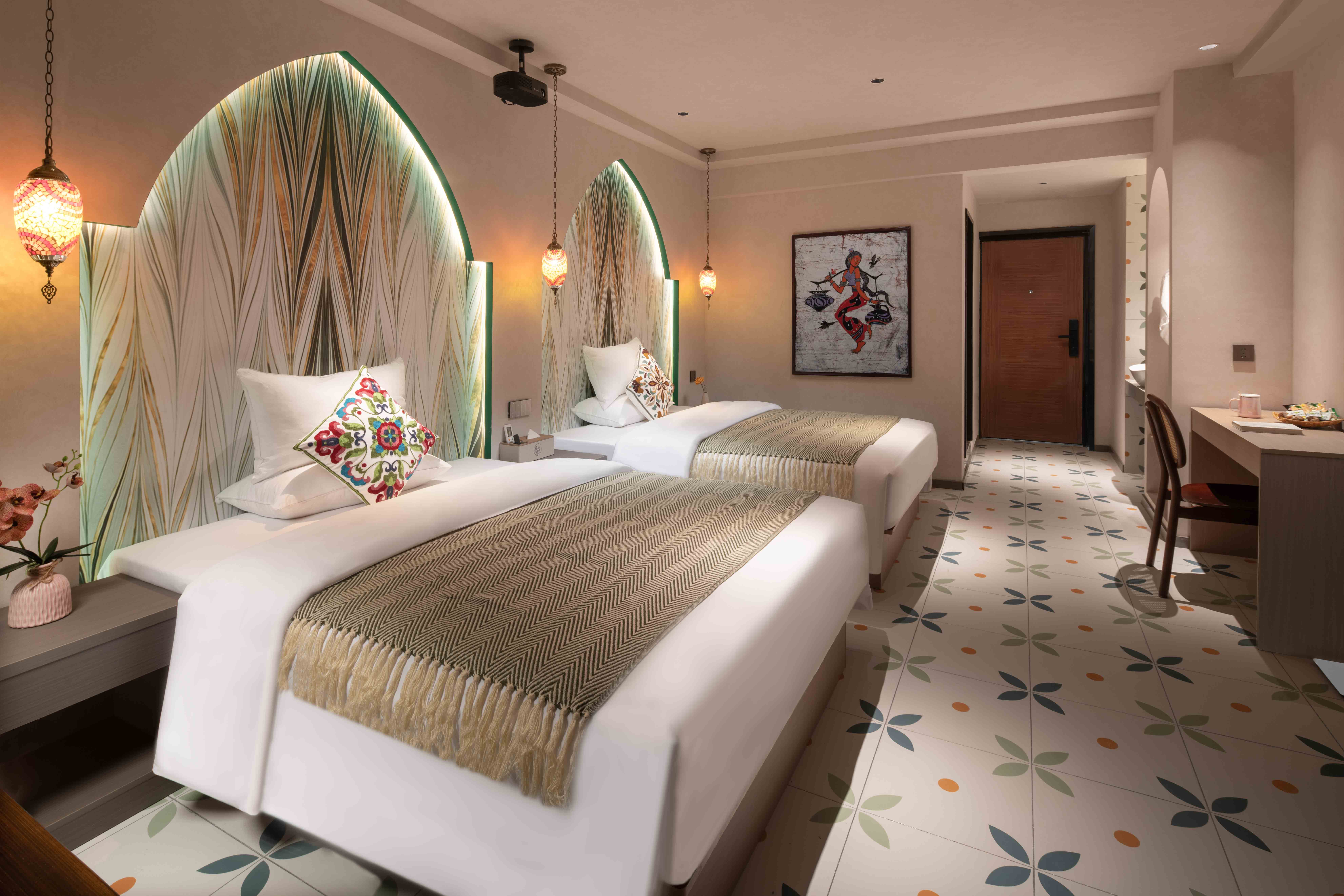Man Shuang Large Screen Cinema Ethnic Art Twin Room (High-Definition Projection + Latex Pillows)