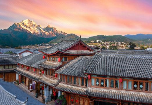 The hotel is located at the northern slope of the ancient city of Lijiang, with a view of Yulong Sno...